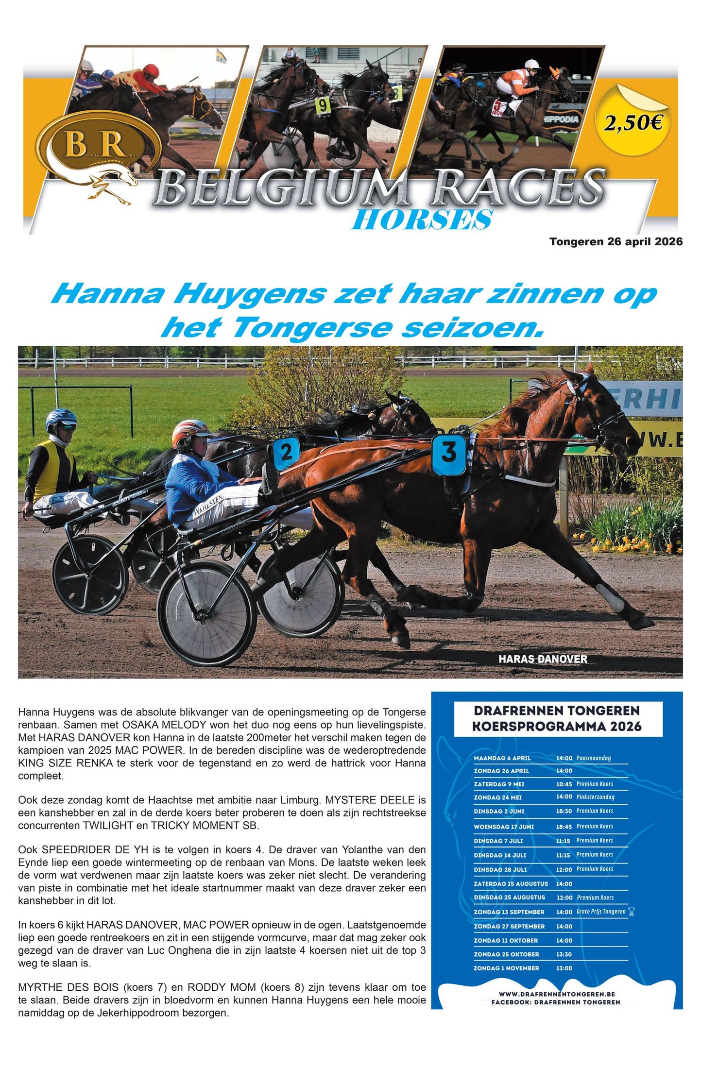 * Het koersprogramma is terug te vinden op onze pagina "KOERSPROGRAMMA / KRANT BELGIUM RACES"